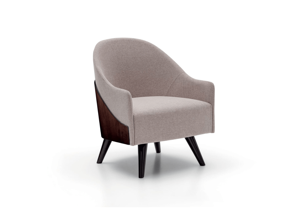 Lounge chair featuring bent plywood veneer with generously cushioned seating