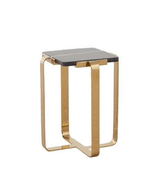 A luxurious black marble top resting elegantly on a uniquely curved metallic base